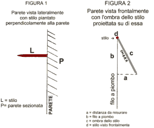 l'aiuto di un filo a piombo partente dal piede dello stilo. Usando poi una calcolatrice